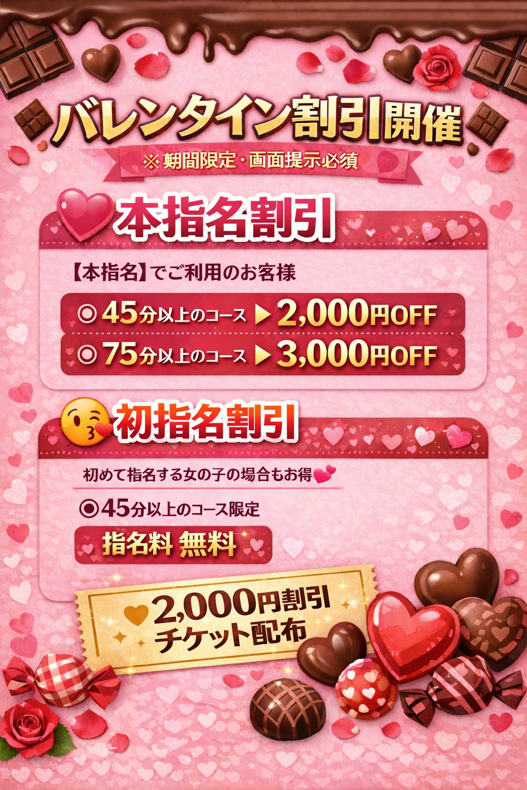 フリー3,000円引き・指名料無料など